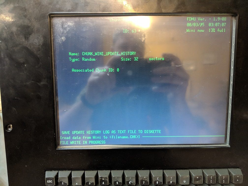 The control begins writing the backup data to the diskette. This DOES NOT GET PART PROGRAMS!